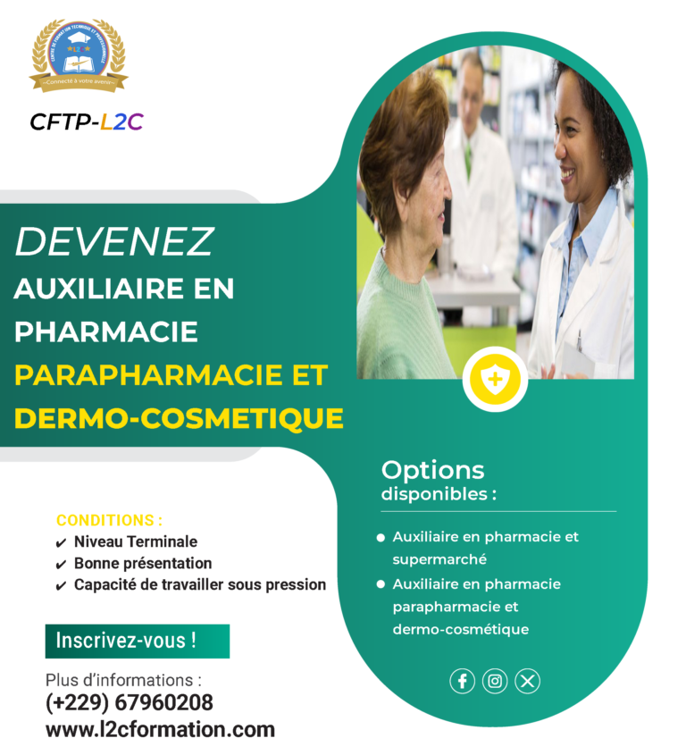 L’Auxiliaire de Pharmacie et supermarché formé au « CFTP-L2C» est une personne capable d’exercer dans les 04 (quatre) axes ci-après :